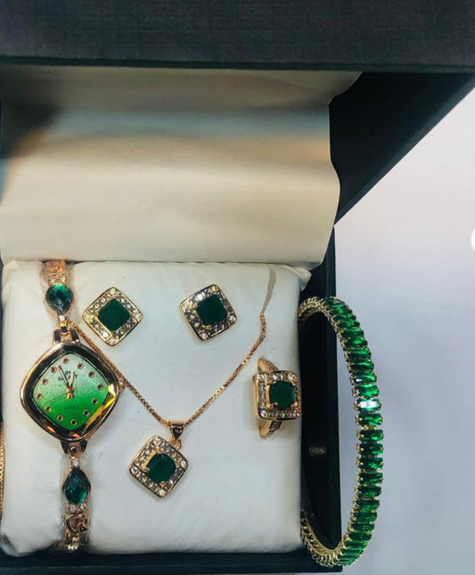 Chic Womens Digital Display Watch With Emerald Green Jewellery Stainless Steel Is Specially Designed To...
