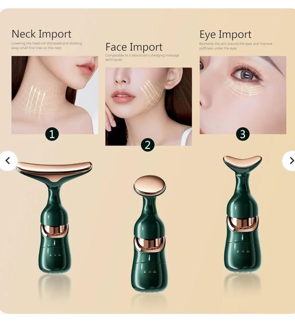 Achieve a refreshed, sculpted look with the 3-in-1 Face Slimming & Uplift Wand. This advanced beauty massager combines gentle heat, soothing vibrations, and ergonomic design to help improve the appearance of skin tone and elasticity. Perfect for daily skincare routines, it supports better absorption of serums and creams while delivering a relaxing, spa-like facial massage experience.