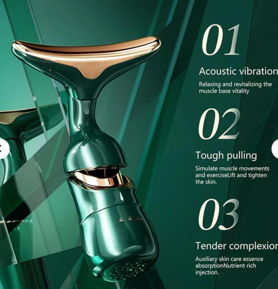 Combines thermal care, vibration massage, and facial sculpting to support skin tightening and lifting.