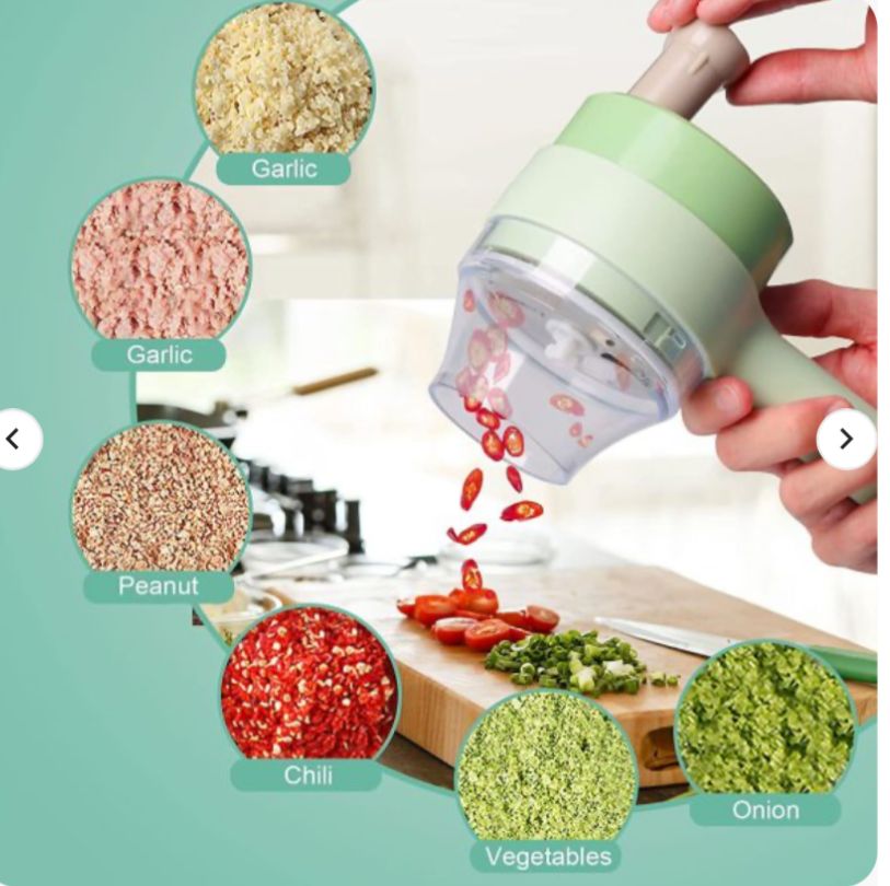 4 In 1 Handheld Electric Vegetable Cutter Wireless Food Processor For Garlic Pepper Chili Onion Celery Ginger Meat With Brush(Random Color )