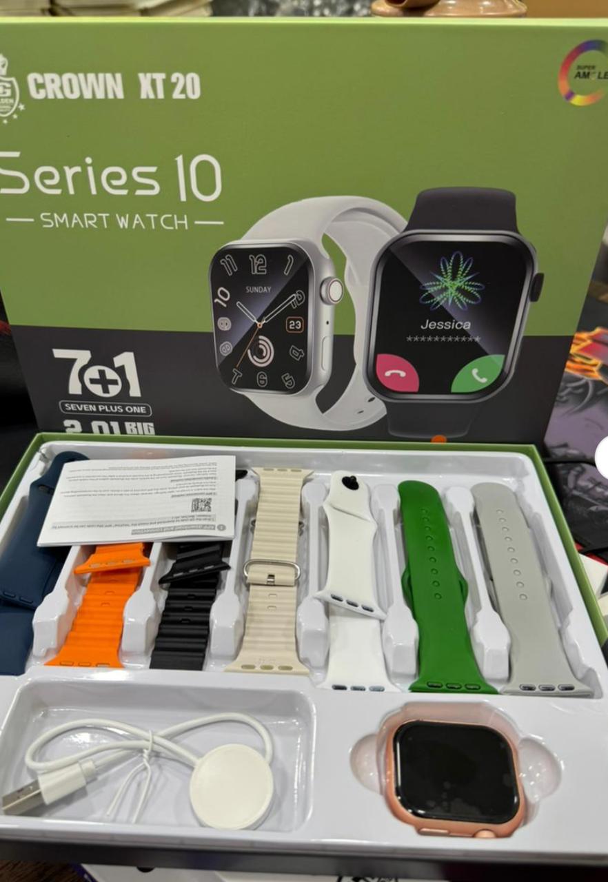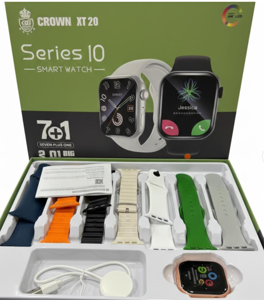 The CROWN XT20 Series I0 Smart Watch 7+1 Combo is designed for those who want more from their wearable technology. With its stunning 2.01-inch big HD display, you get a crystal-clear viewing experience for calls, notifications, fitness tracking, and more.