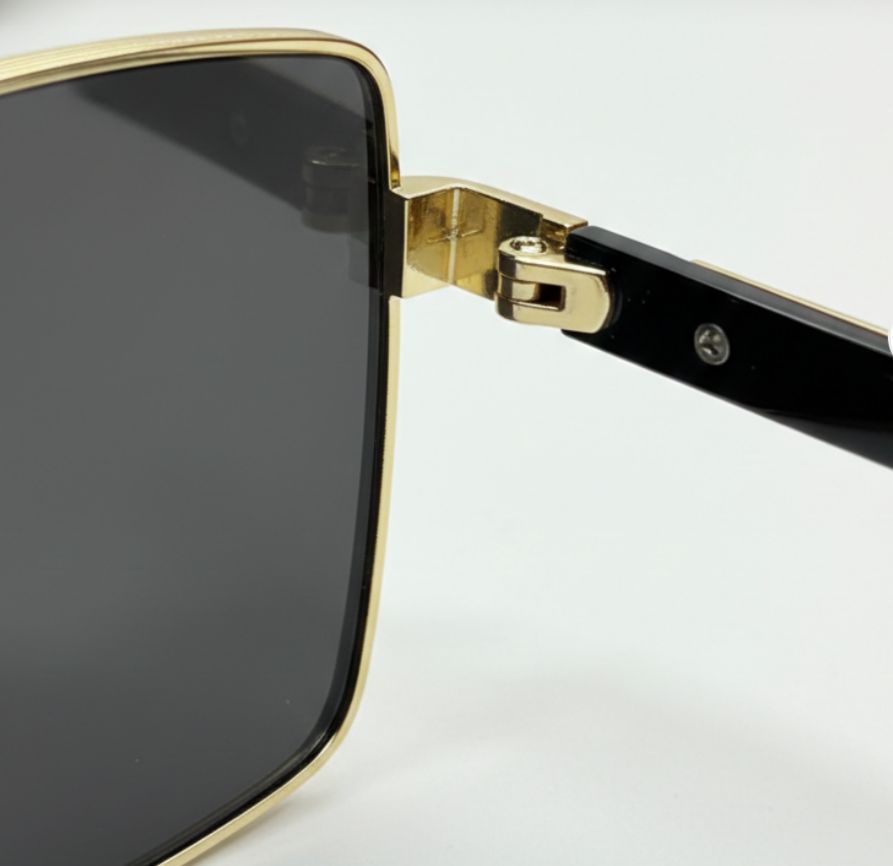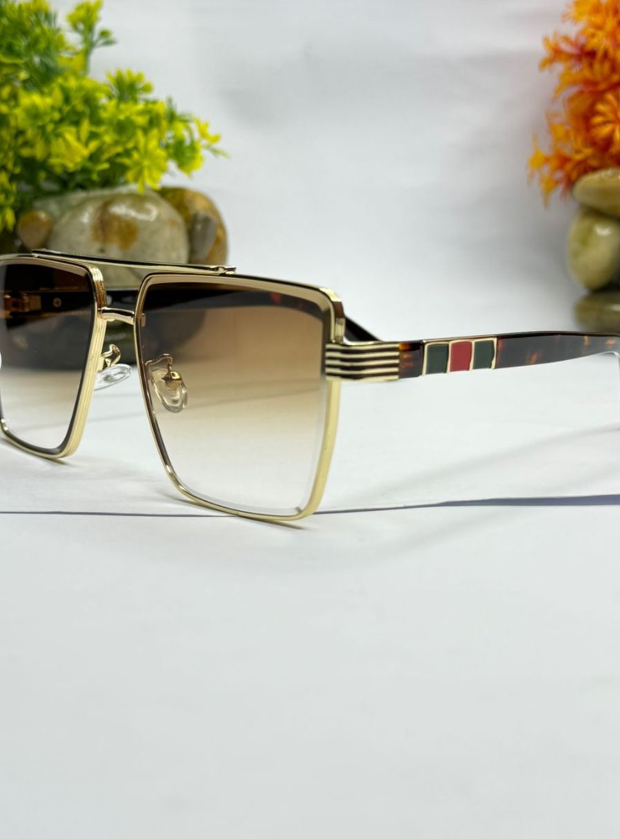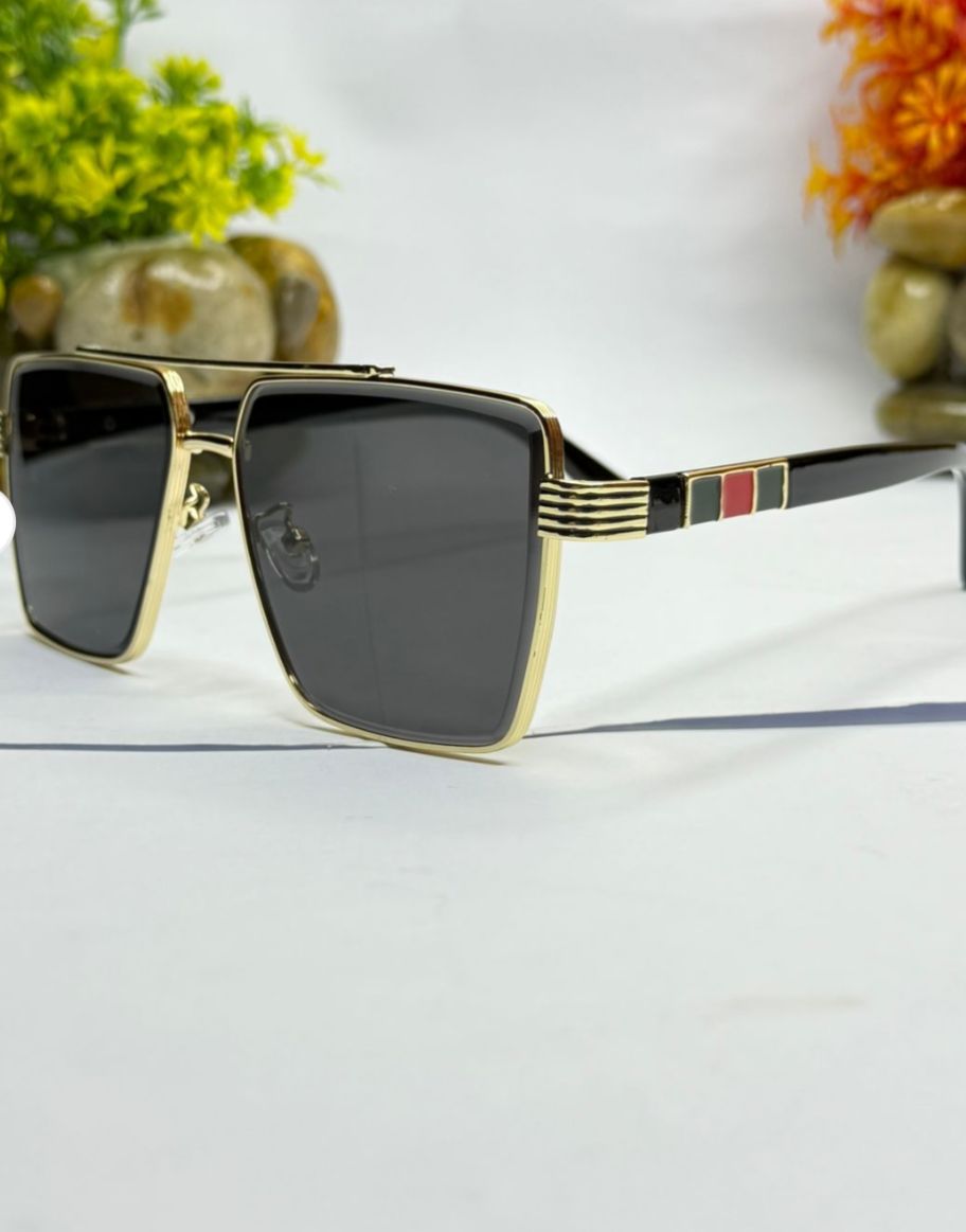 Step into elegance with these premium luxury square sunglasses designed for both men and women. Featuring a stylish golden metal frame combined with black arms and red-green designer stripes, these sunglasses offer a bold and modern look.