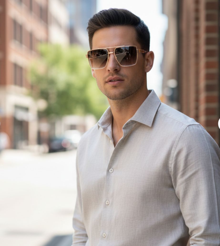 - Bold Luxury Style – Square designer frame with signature side stripes for a powerful, fashionable look.