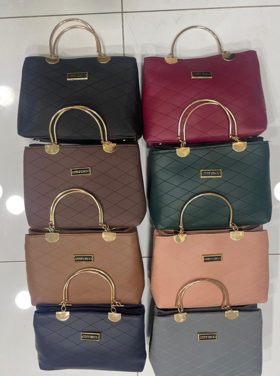 - Branding: A small, discreet "JIMMY CHOO"-style metal logo plaque is affixed to the front center of each bag (note: this appears to be a stylized brand label, not an official product).