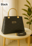 Premium Quilted Faux Leather Handbags With Golden Metal Handles - Elegant Shoulder Tote Collection (Black)