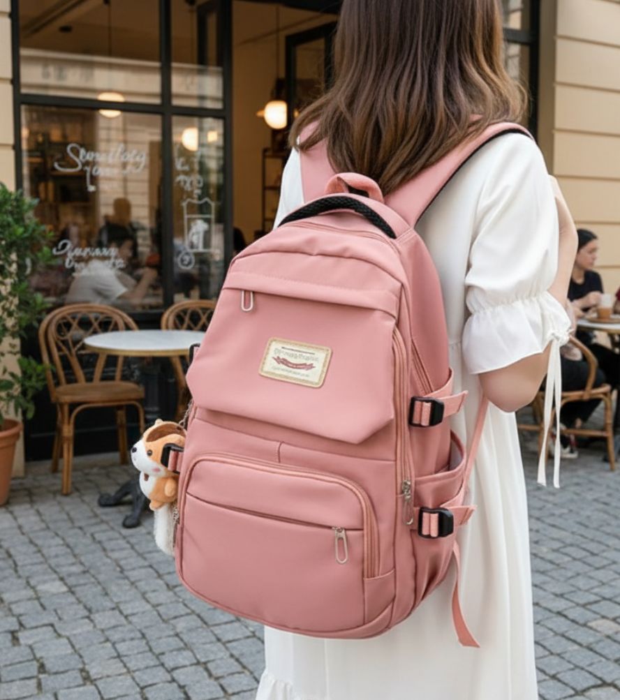 Its modern Korean-inspired design makes it a trendy choice for teenagers and girls, suitable for school, college, or work. With adjustable shoulder straps and a practical build, this backpack combines fashion with functionality, ensuring comfort and convenience for everyday use.